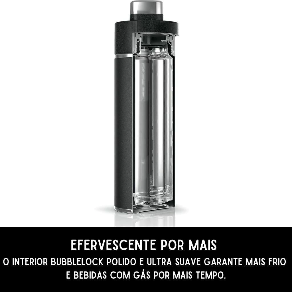 FICA FIZZIER: Polido, interior ultra-suave BubbleLock garante bebidas mais frias e mais efervescentes por mais tempo.